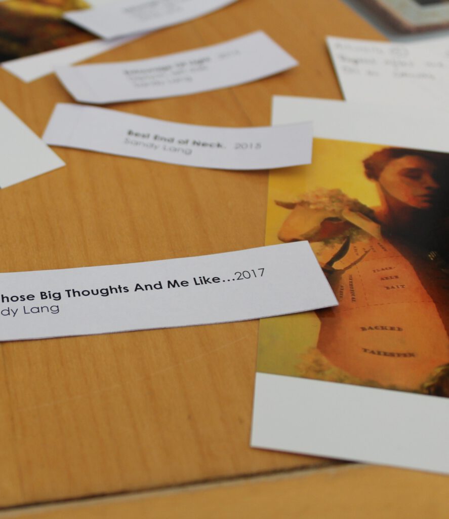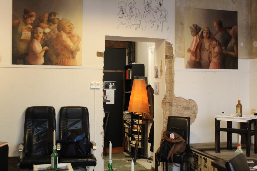 The solo exhibition „Entourage of Light“ displayed eleven paintings of Sandy Lang at the former arty bar „poor and literate“ in Berlin 2016. The exhibition title refers to the artists approach of using dark and light elements in her paintings as symbolic for the human condition of ambivalence with a strong emphasis on light and thus: hope. The exhibition durated from April to June 2016.